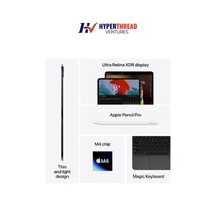 The Apple iPad Pro 13-inch (M4) is the thinnest and most powerful tablet ever created, pushing the boundaries of what is possible on a mobile device. Driven by the groundbreaking M4 chip, this iPad features a next-generation CPU and a powerful GPU with hardware-accelerated ray tracing, delivering up to 1.5x faster CPU performance than the previous M2 model. Whether you are rendering complex 3D designs, editing 4K ProRes video, or engaging in intensive AI-driven workflows, the iPad Pro M4 handles it all with professional-grade fluidity. Encased in a stunning Space Black finish, its ultra-slim 5.1mm design makes it the ultimate tool for elite portability.